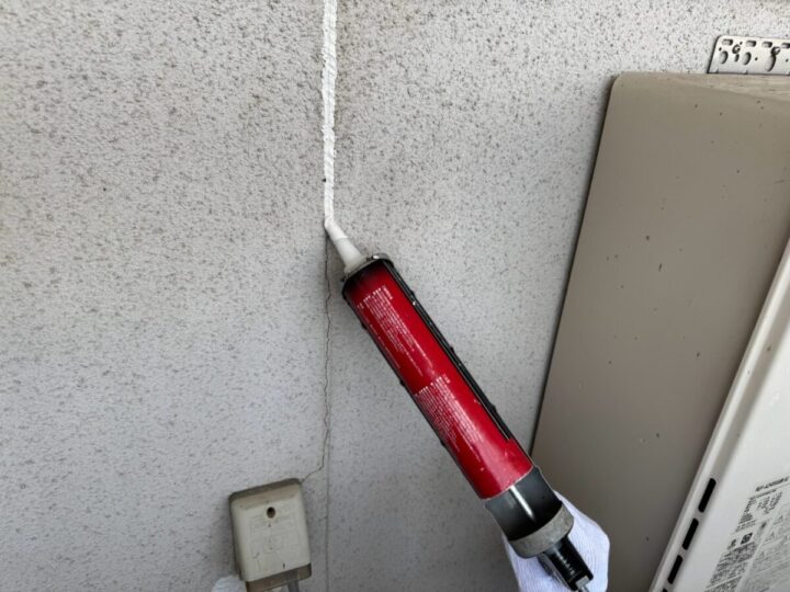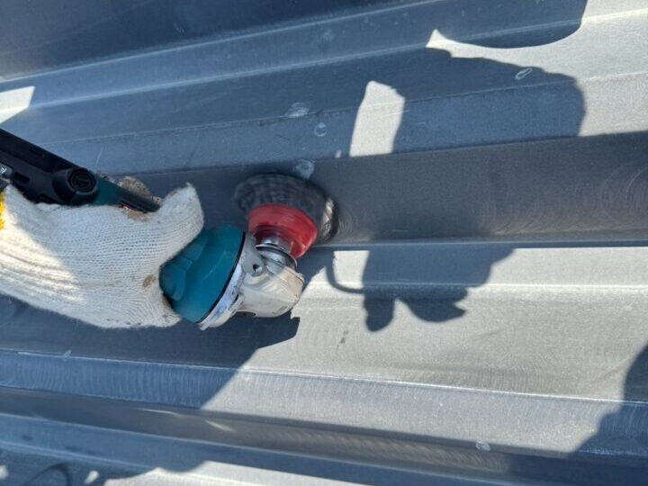 変性シリコンを用い、目地部を埋めるように防水処理を行います。ケレン処理(研磨)