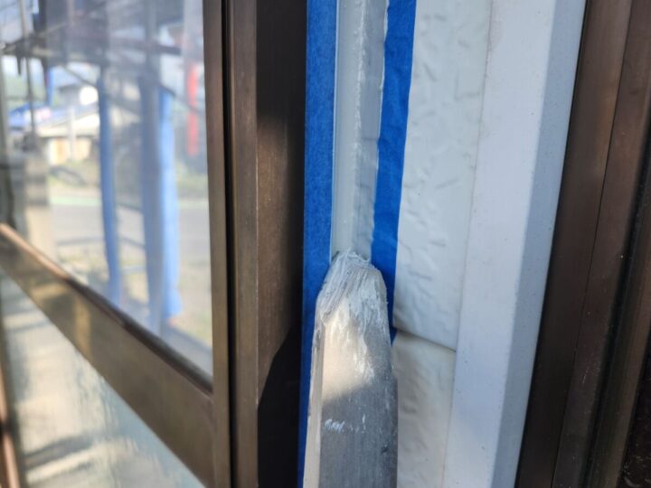 既存のコーキングを撤去して、新しいコーキングを充填します。ケレン処理(研磨)