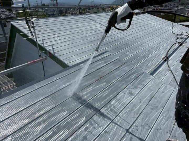 業務用の高圧洗浄機を使用して汚れやごみをきれいに洗い流します。屋根塗装