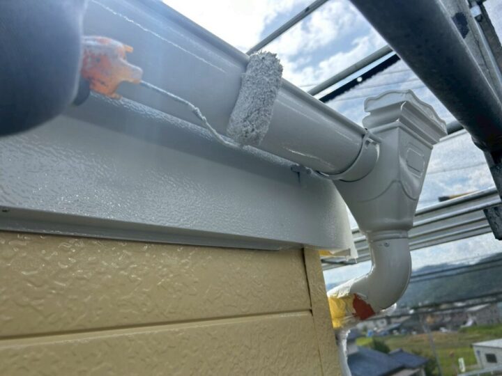上塗り材との密着力を高めるため、状態に合わせた材料で下塗りを行います。付帯部塗装(雨樋)