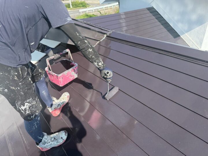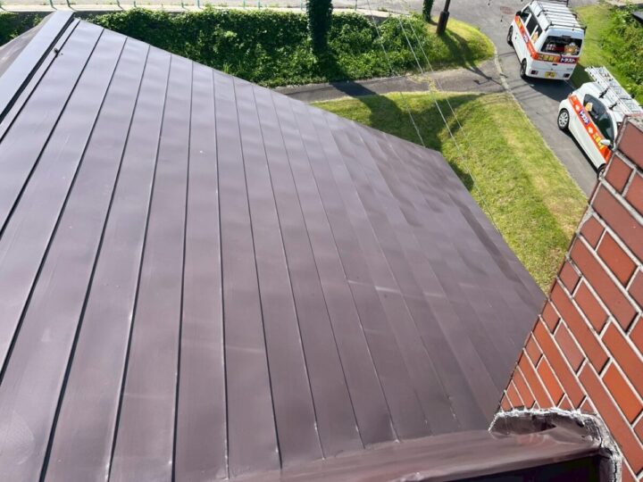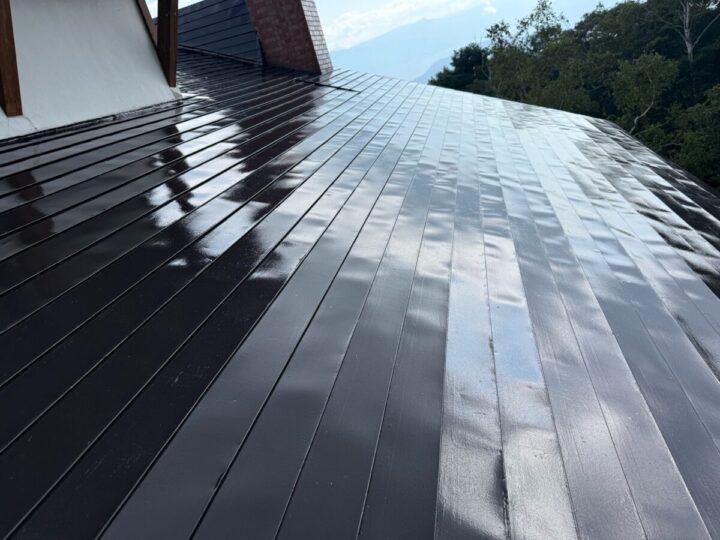 使用材料 | ブロンズプラン(アステックペイント) 屋根:スーパー遮熱サーモSi (色:キャビアブラウン) 付帯部 (色:マホガニー チャコールブラウン) |