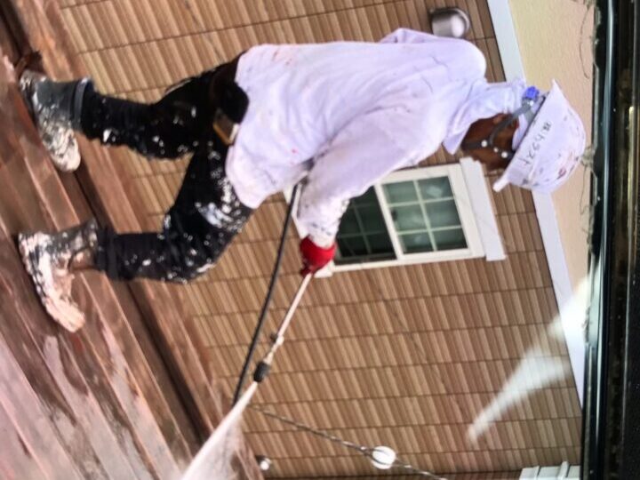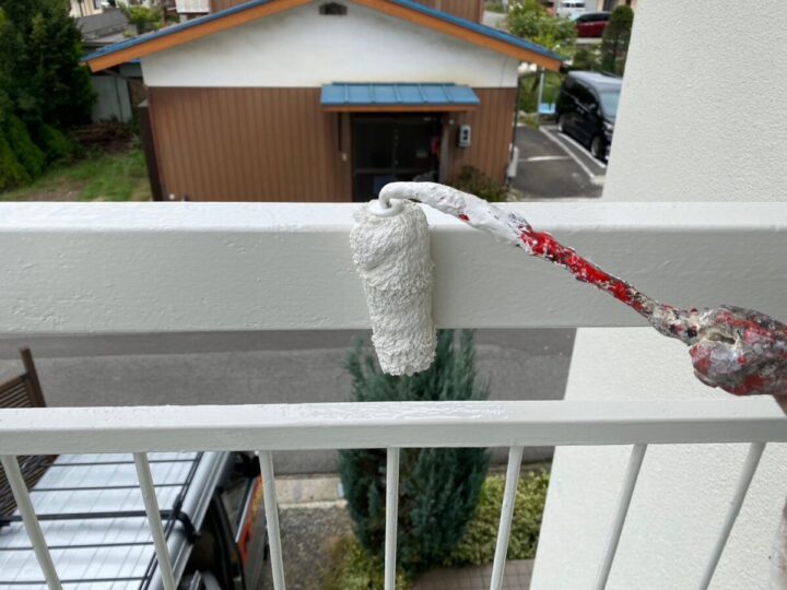 メンテナンス内容といたしましては、丁寧に研磨作業を行い、洗浄した後、遮熱性に優れた塗料で施工致しました。ベランダの鉄骨も同様にサビ等きれいにした後、塗装致しました。