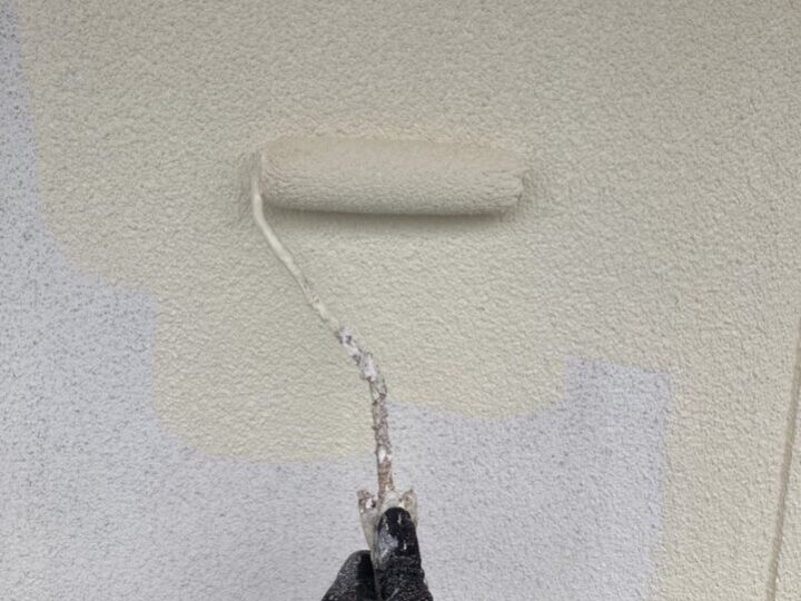 下塗り後、塗料の性能を発揮できる塗膜にする為、上塗りを2回行います。