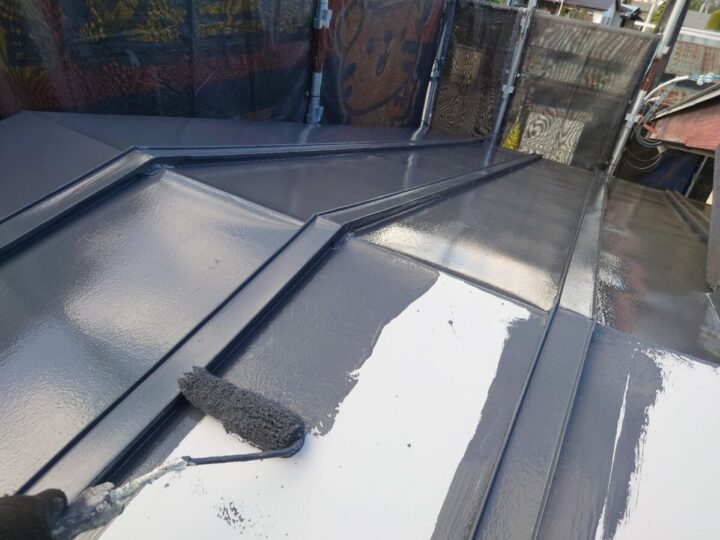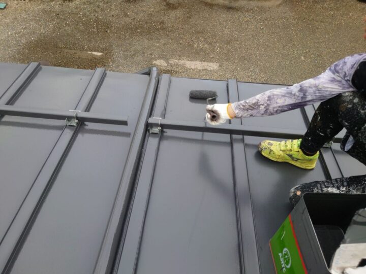 下塗りをした後、刷毛やローラーを使用し塗り残しがないよう丁寧に塗装します。