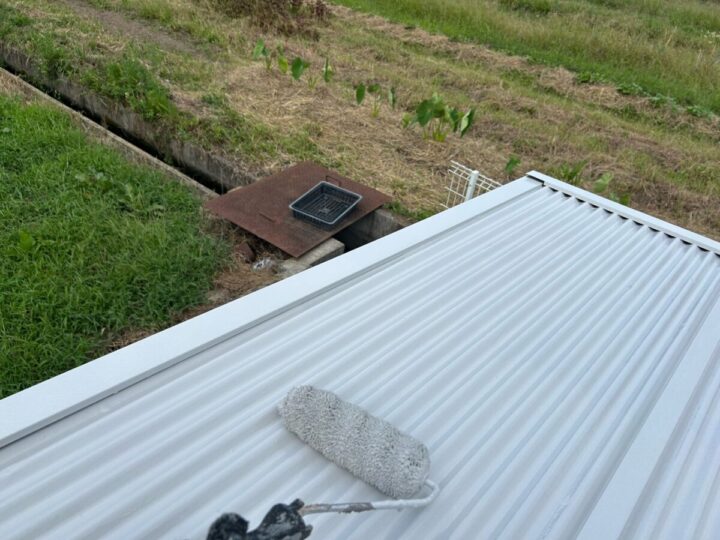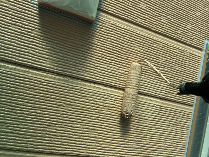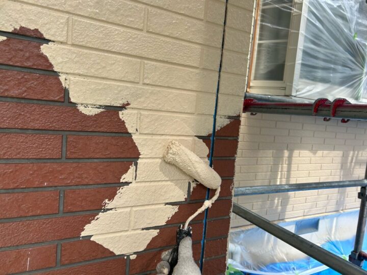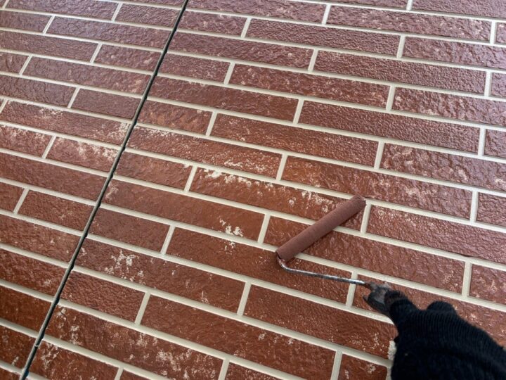 塗り残しがないよう刷毛やローラーで丁寧に塗装していきます。外壁上塗り