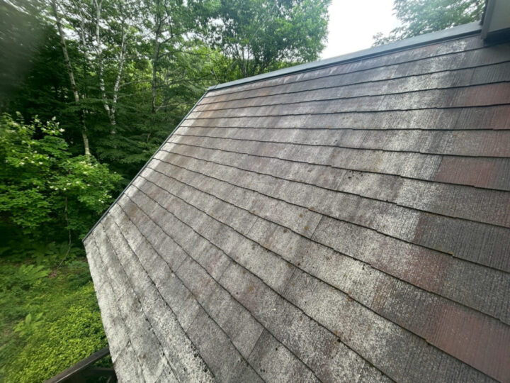 隙間も刷毛を使ってしっかりと塗っていきます。屋根の状態に合わせて下塗り材を変えております。屋根上塗り