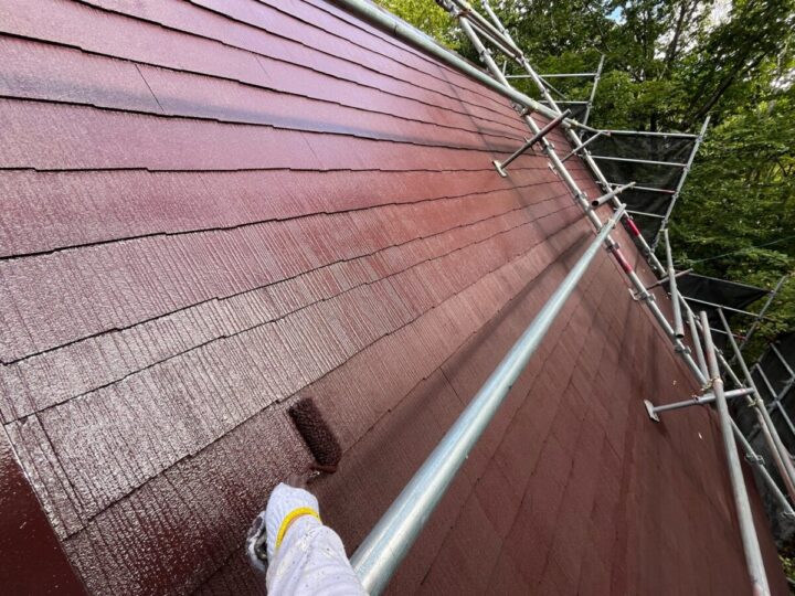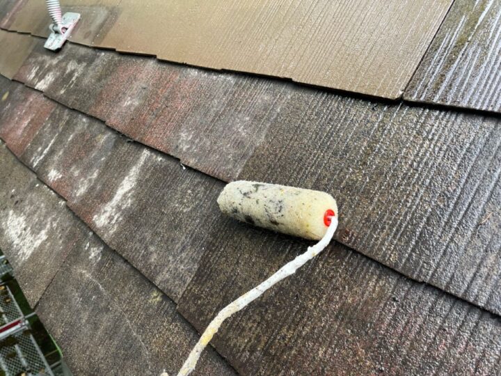 塗料(上塗り材)を薄めすぎず、規定量を塗布することが大切です。屋根下塗り