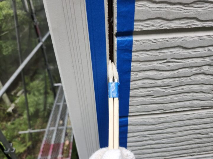 経年劣化が生じている部分は増し打ちにて補修を行います。外壁下塗り