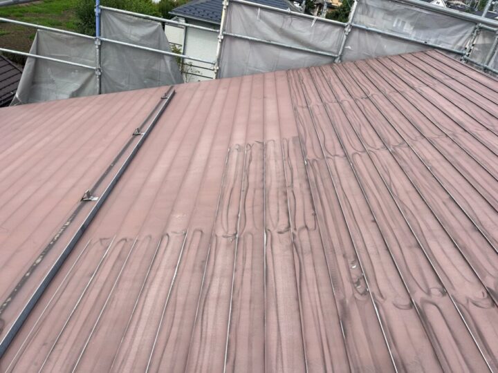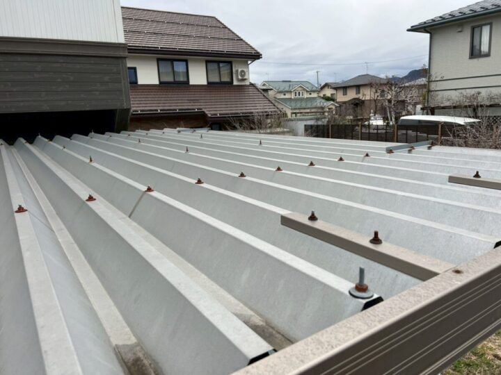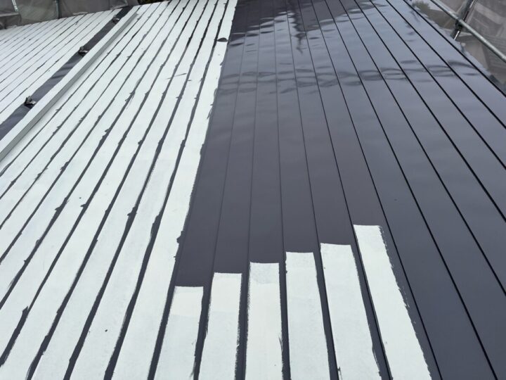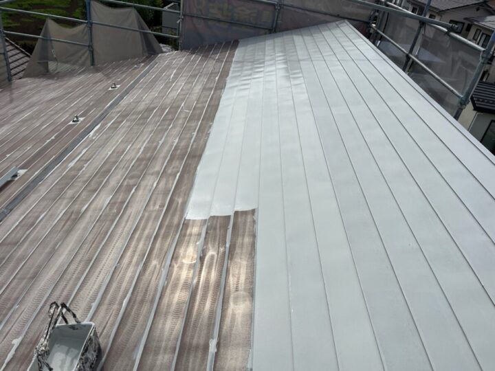下地の状態や材に合わせた下地調整剤(サビ止め)を塗装いたします。屋根上塗り(1回目)