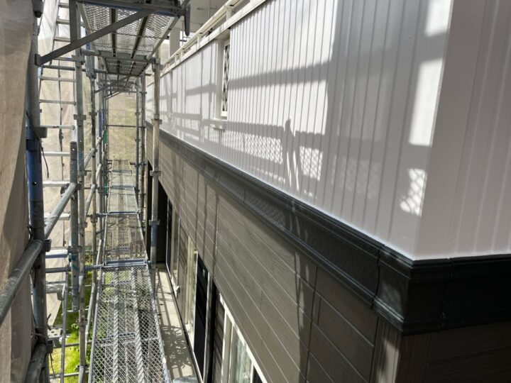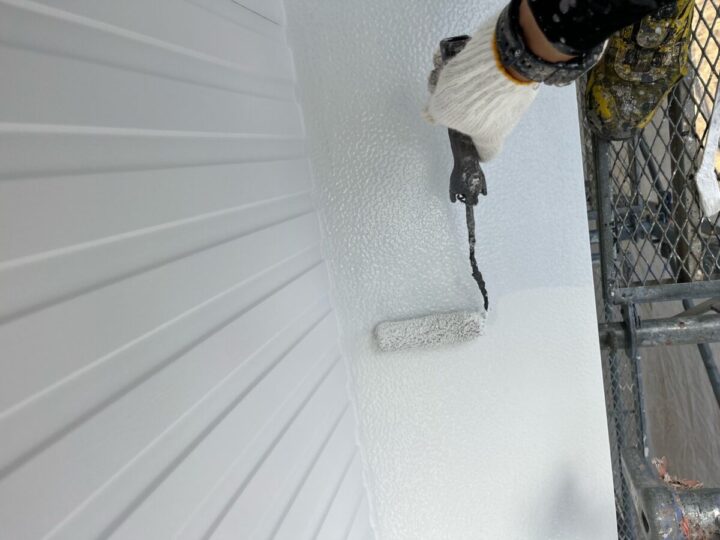 塗料を薄めすぎたりせずに、規定量を塗布することが必要です。外壁上塗り(2回目)
