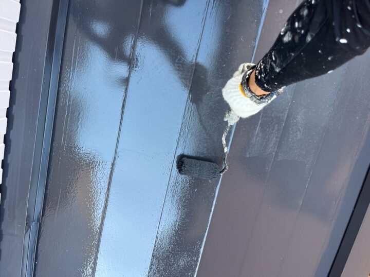 下塗りをした後、刷毛やローラーを使用し塗り残しがないよう丁寧に塗装します。屋根上塗り(2回目)