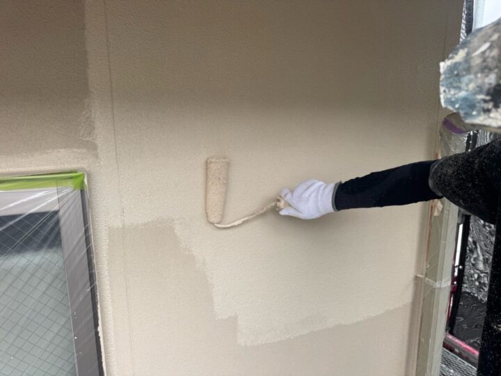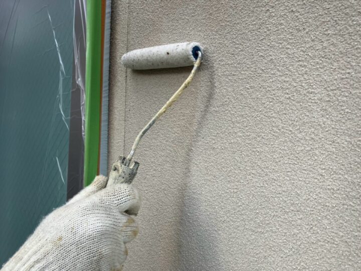 上塗り材との密着力を高める為、状態に合わせた材料で下塗りを行います。外壁上塗り