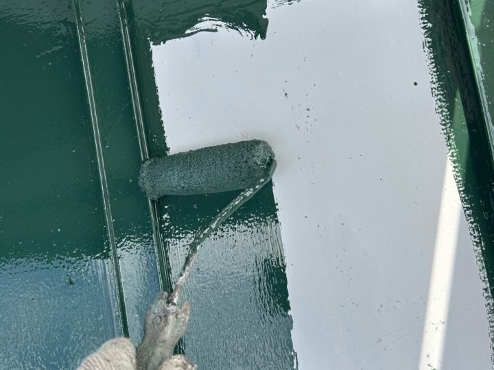 下塗りをした後、刷毛やローラーを使用し塗り残しがないよう丁寧に塗装します。