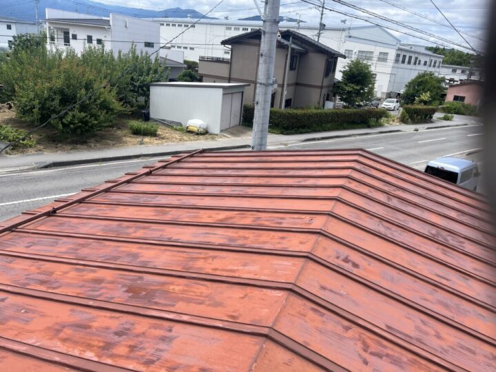 屋根にサビが全体的に出ており、塗膜の力が弱ってきていて、防水機能が低下した状態でした。