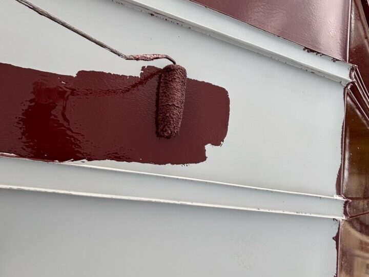 倉庫の屋根塗装なので、コストを抑えた塗装をご希望されておりましたので、通常は下塗り1回、上塗2回で施工致しますが、下塗り1回、上塗り1回のプランのご提案をさせて頂き、コストを抑えた施工致しました。