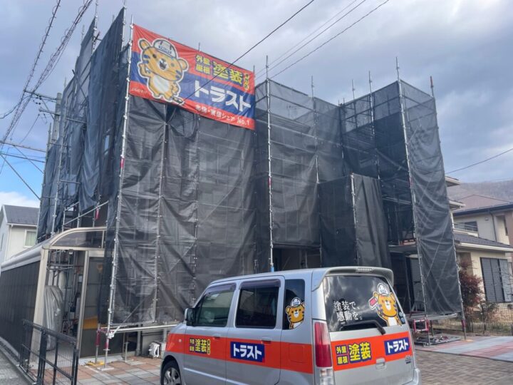 安全や周辺への飛散防止のために足場を仮設します。