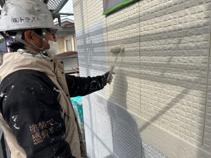 下塗りをした後、刷毛やローラーを使用し塗り残しがないよう丁寧に塗装します。