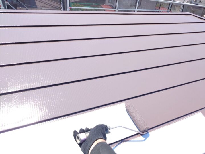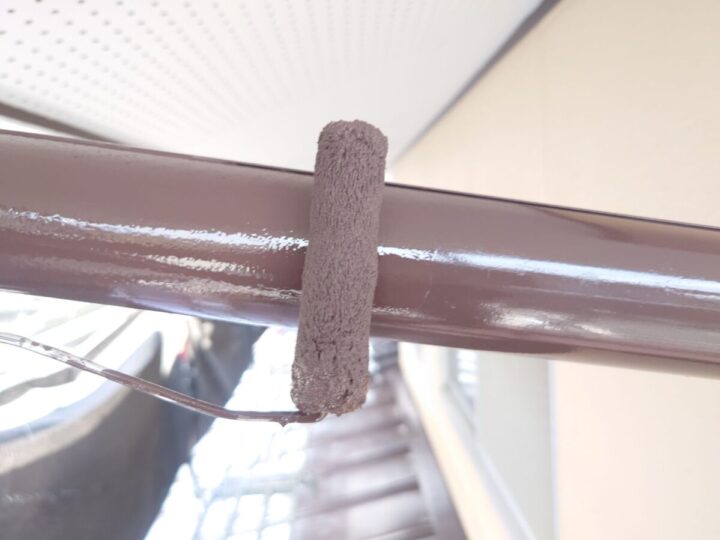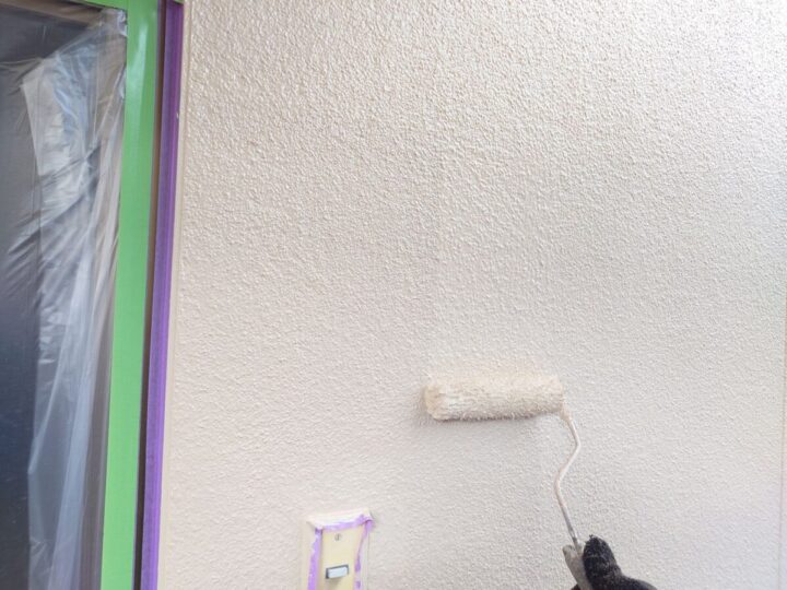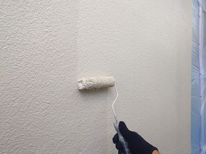 下塗り後、塗料の性能を発揮できる塗膜にする為、上塗りを2回行います。