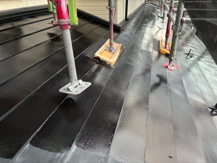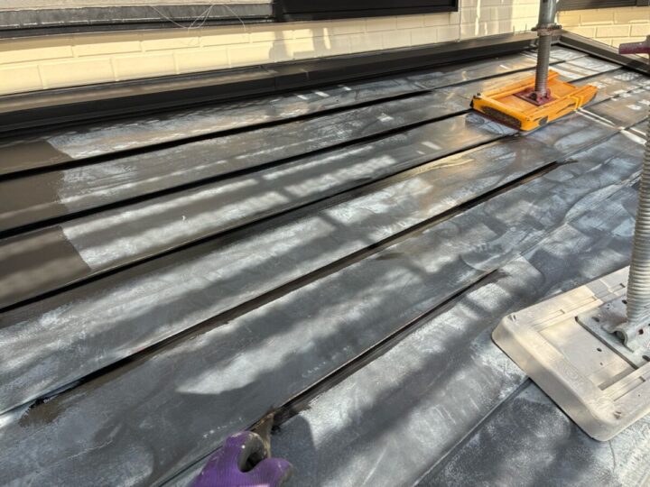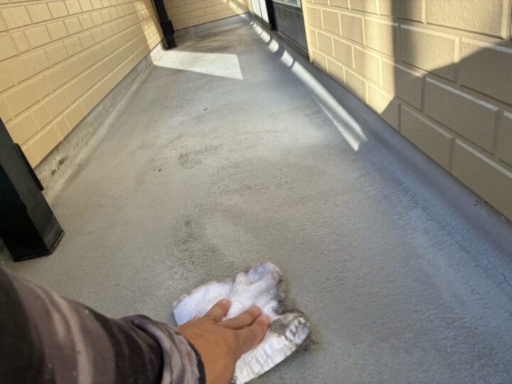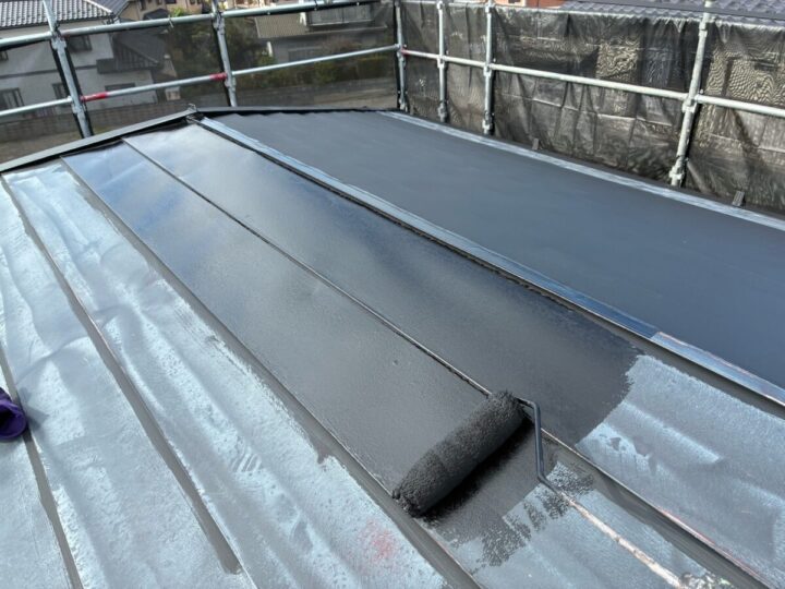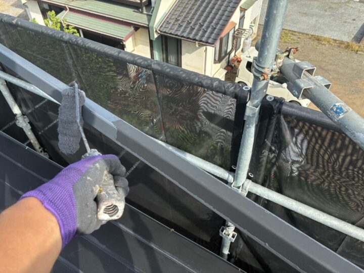 下塗り後、塗料の性能を発揮できる塗膜にする為、上塗りを2回行います。