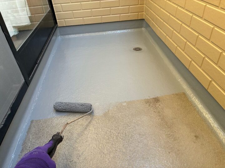 下塗りをした後、刷毛やローラーを使用し塗り残しがないよう丁寧に塗装します。