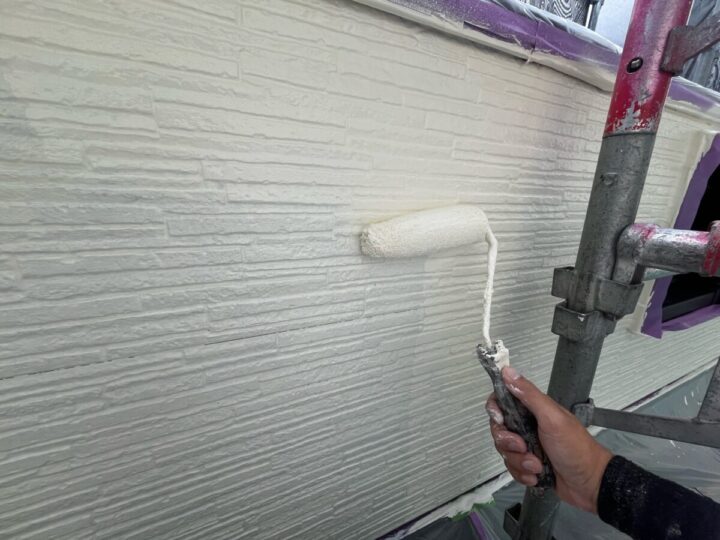 下塗り後、塗料の性能を発揮できる塗膜にする為、上塗りを2回行います。