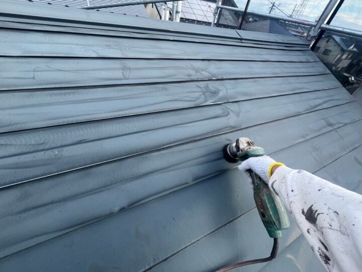 塗料の密着性を高めるため、表面に細かなキズをつけていきます。