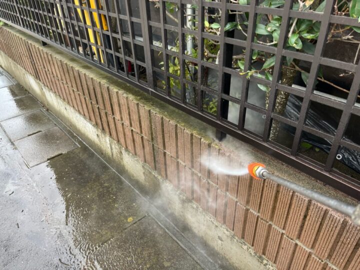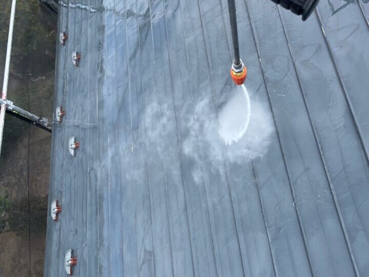 業務用の高圧洗浄機を使用して、汚れやごみを洗い流します。