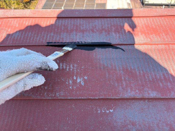 下塗りをした後、刷毛やローラーを使用し塗り残しがないよう丁寧に塗装します。
