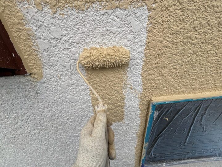 下塗り後、塗料の性能を発揮できる塗膜にする為、上塗りを2回行います。