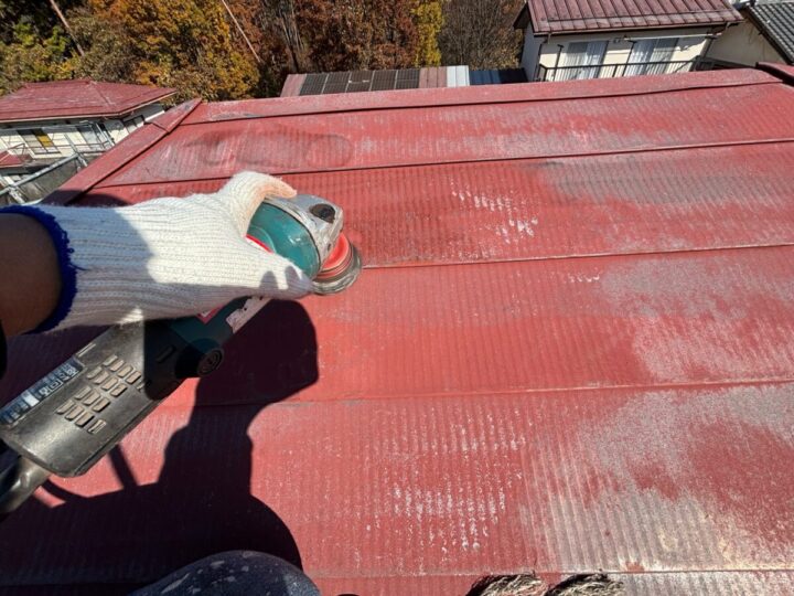 塗料の密着性を高めるため、表面に細かなキズをつけていきます。