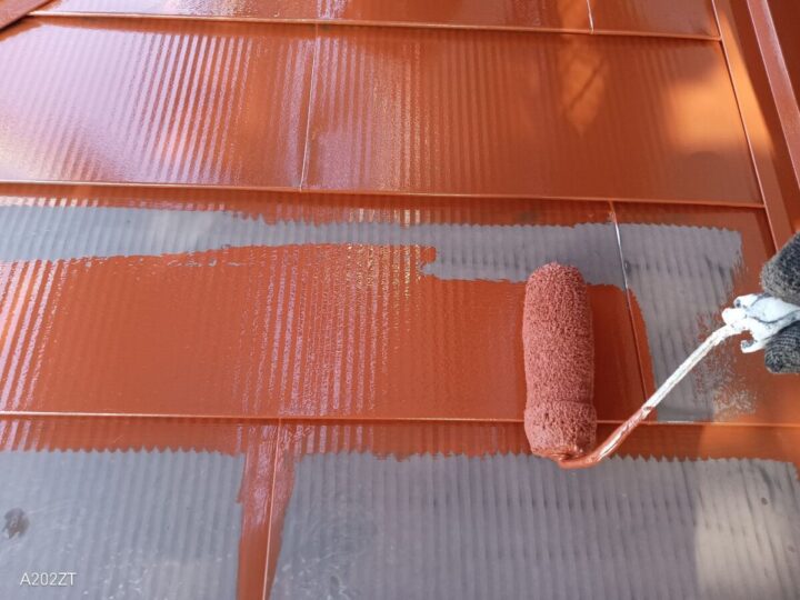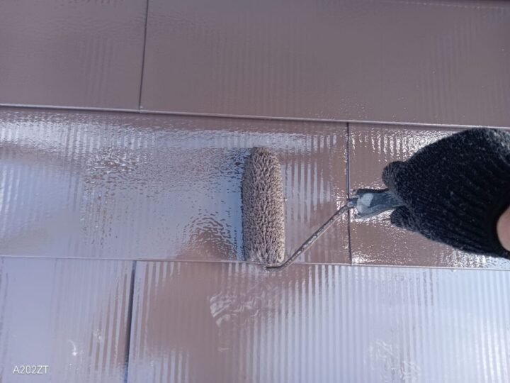 下塗りをした後、刷毛やローラーを使用し塗り残しがないよう丁寧に塗装します。