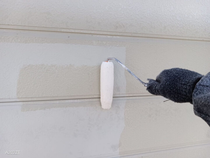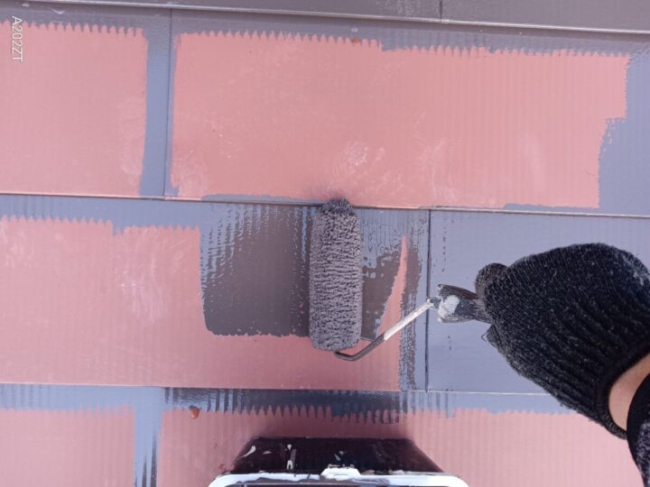下塗り後、塗料の性能を発揮できる塗膜にする為、上塗りを2回行います。