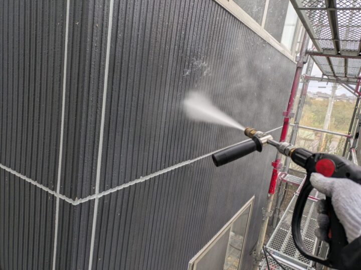業務用の高圧洗浄機を使用して汚れやごみをきれいに洗い流します。