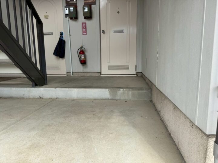 業務用の高圧洗浄機を使用して、汚れやごみを洗い流します。