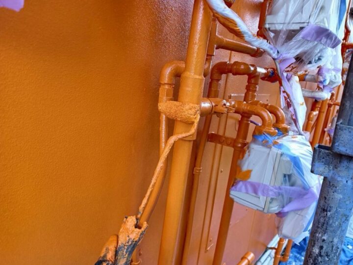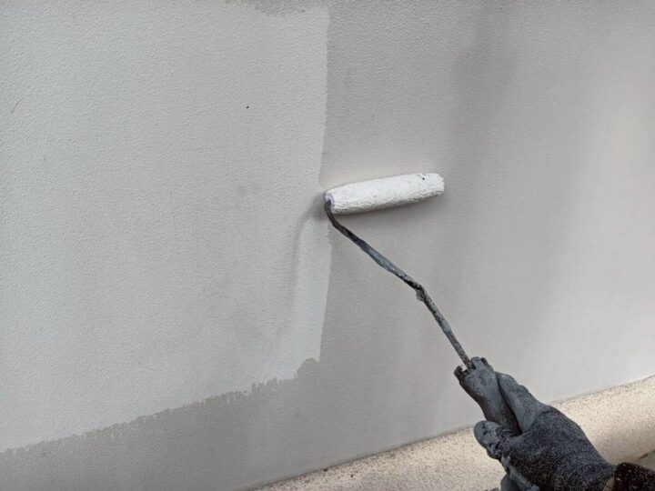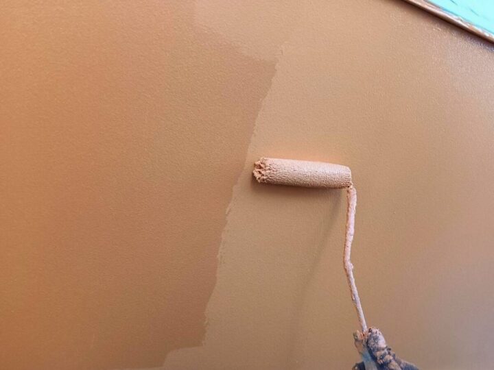 下塗り後、塗料の性能を発揮できる塗膜にする為、上塗りを2回行います。