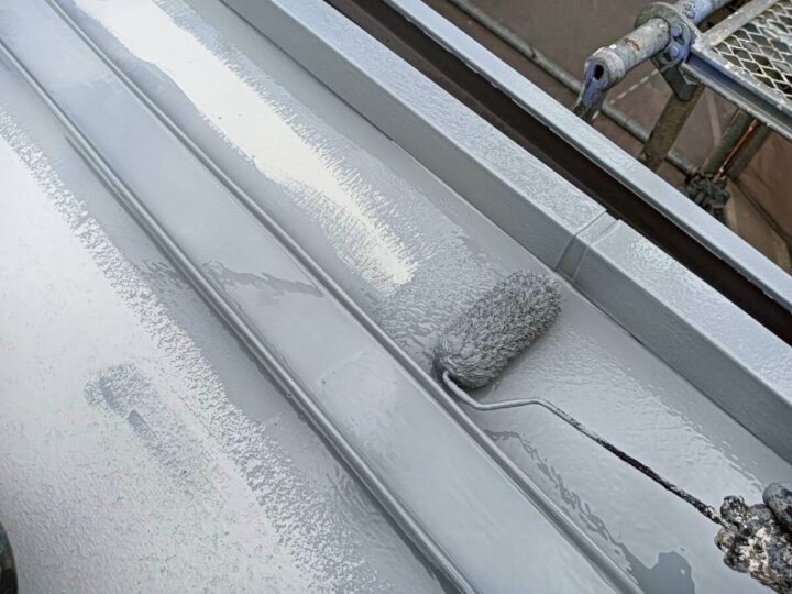 下塗りをした後、刷毛やローラーを使用し塗り残しがないよう丁寧に塗装します。