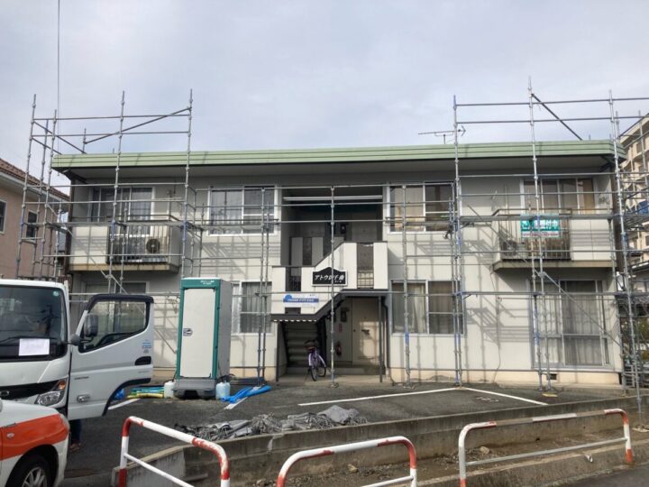 | 使用材料 | ホワイトプラン(アステックペイント) 屋根:アレスダイナミックルーフ (色:クレタグレー) 外壁:スーパーラジカルシリコンGH (色:12-60X(オレンジ色/艶有)) |