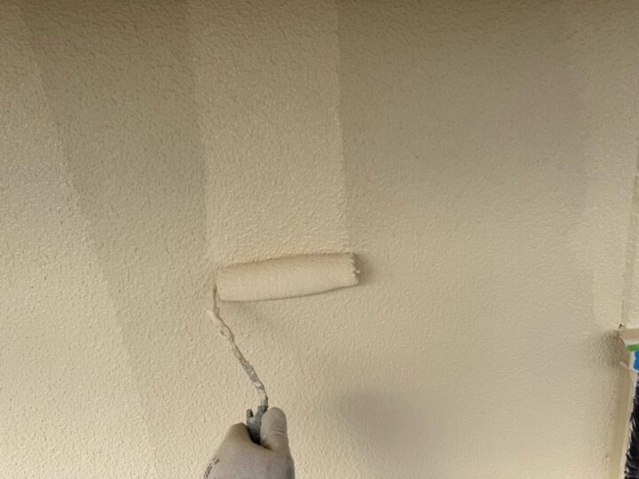 下塗り後、塗料の性能を発揮できる塗膜にする為、上塗りを2回行います。