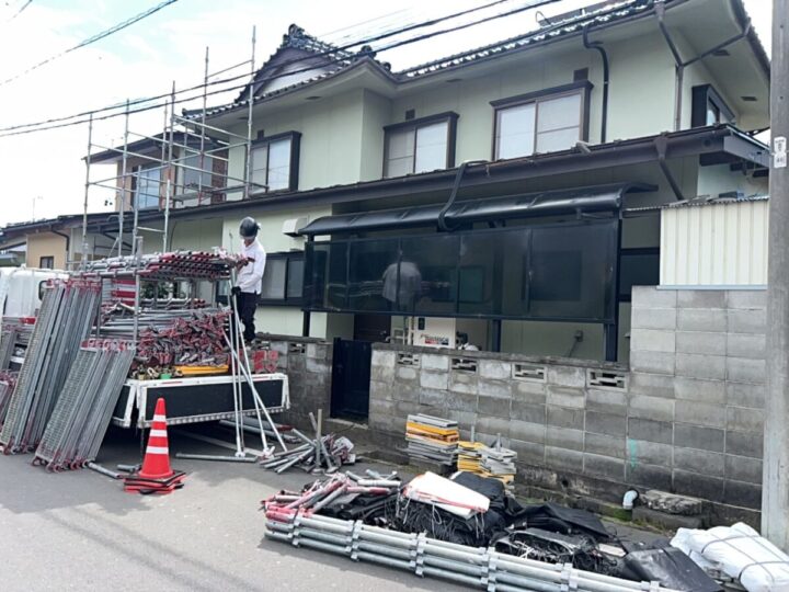 安全や周辺への飛散防止のために足場を仮設します。