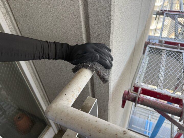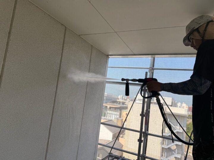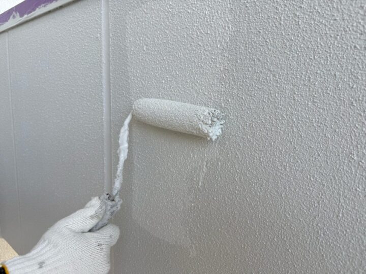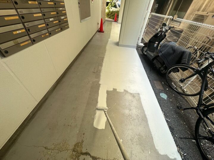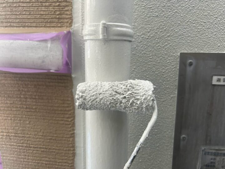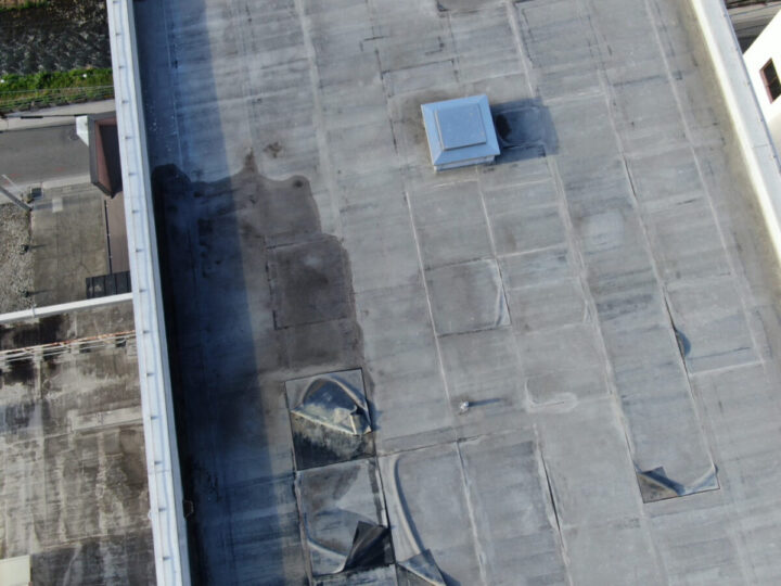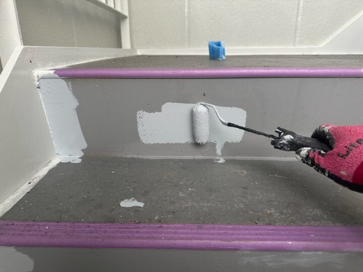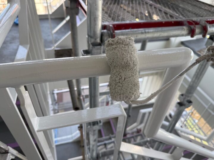 外壁の状態としましては、外壁材のひび割れやコーキング部の劣化が確認出来ました。階段部が腐食している箇所があり、塗装メンテナンスでカバーしていきます。屋上は排水に詰まりがあり、防水シートも層が劣化しており、雨漏れを未然に防ぐために工事が必要な状態でしたので、塗装と併せてご提案致しました。