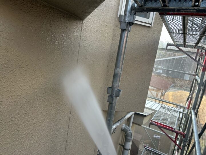 業務用の高圧洗浄機を使用して汚れやごみをきれいに洗い流します。