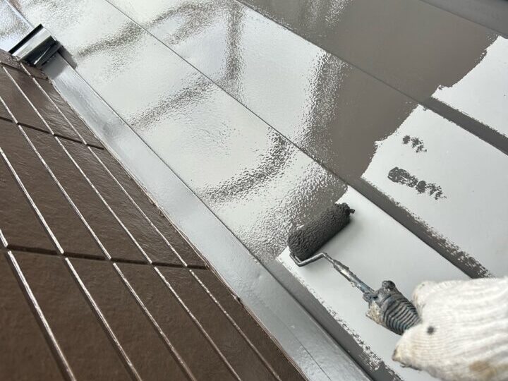 塗料の性能を十分に発揮できる膜厚にするため、上塗りは2回行います。