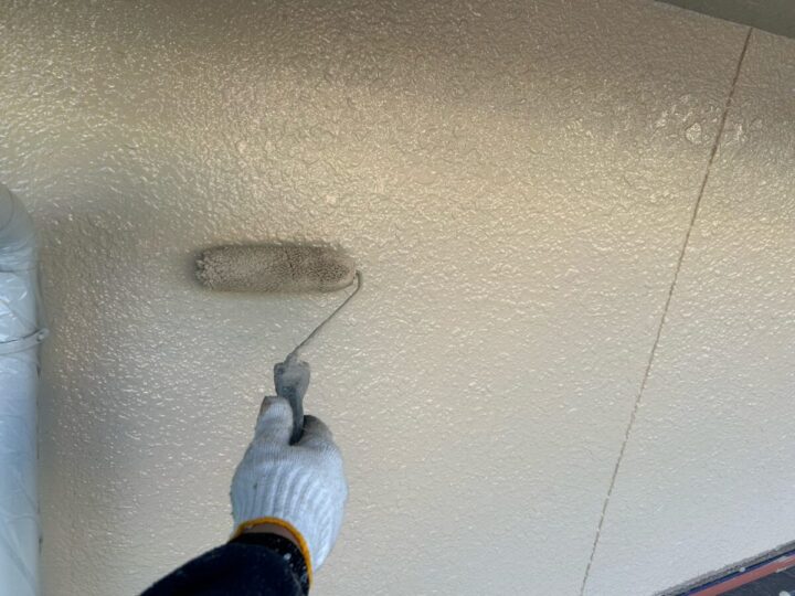 下地の種類、状態にあわせた材料で下塗りを行います。下地を強化することが目的です。