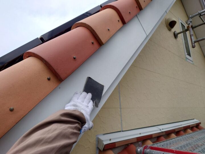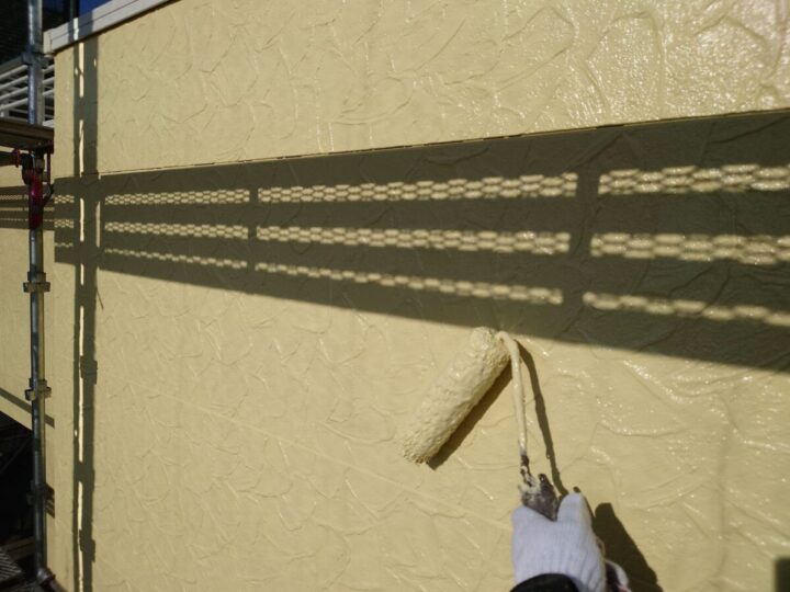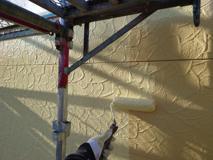 下塗り後、塗料の性能を発揮できる塗膜にする為、上塗りを2回行います。