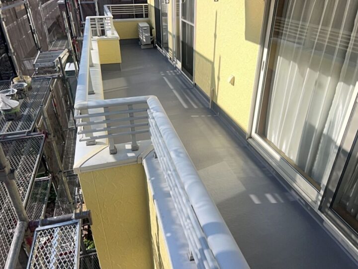 メンテナンス内容としましては、外壁の補修を行い、3回の工程で塗装いたしました。他にもベランダの防水工事も併せて施工致しました。