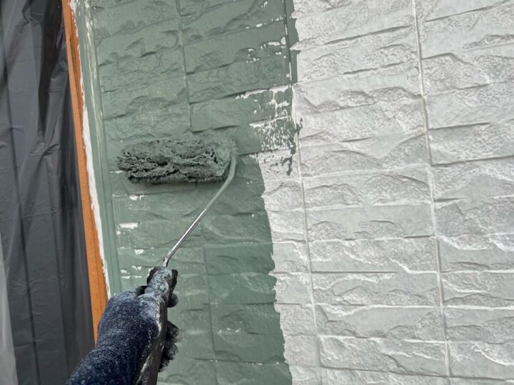下塗り後、塗料の性能を発揮できる塗膜にする為、上塗りを2回行います。