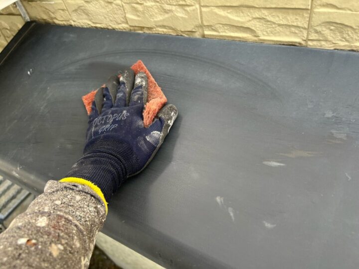塗料の密着性を高めるため、表面に細かなキズをつけていきます。