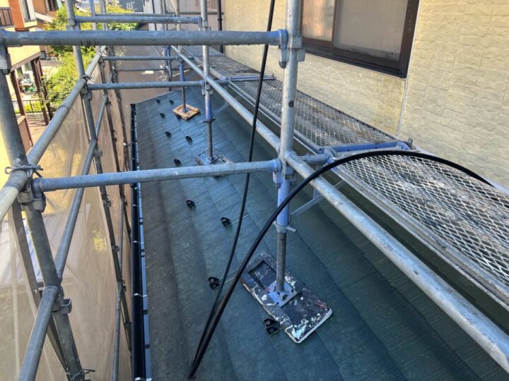 安全や周辺への飛散防止のために足場を仮設します。