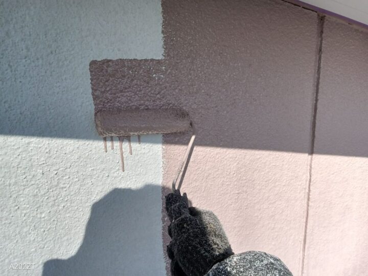 下塗り後、塗料の性能を発揮できる塗膜にする為、上塗りを2回行います。