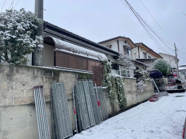安全や周辺への飛散防止のために足場を仮設します。